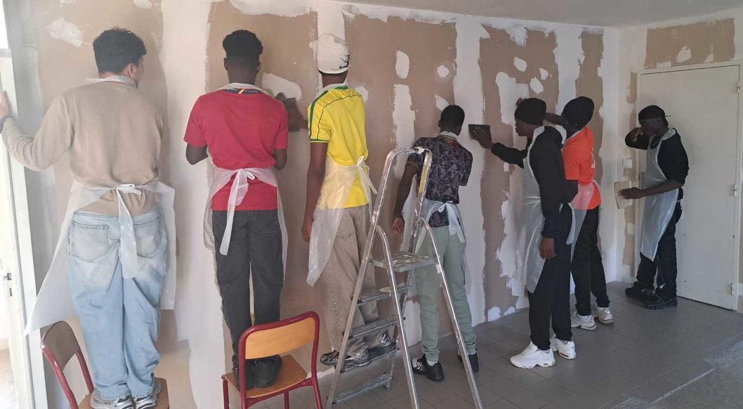 La rénovation en cours des locaux de la MFR de Saint-Etienne de Montluc par les apprentis en BTS Electrotechnique.