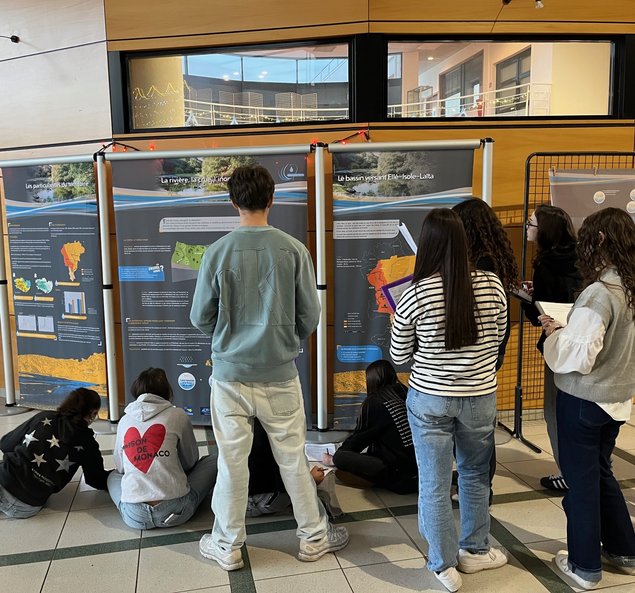 l’eau à Quimperlé a été installée dans le hall du lycée et au CDI.