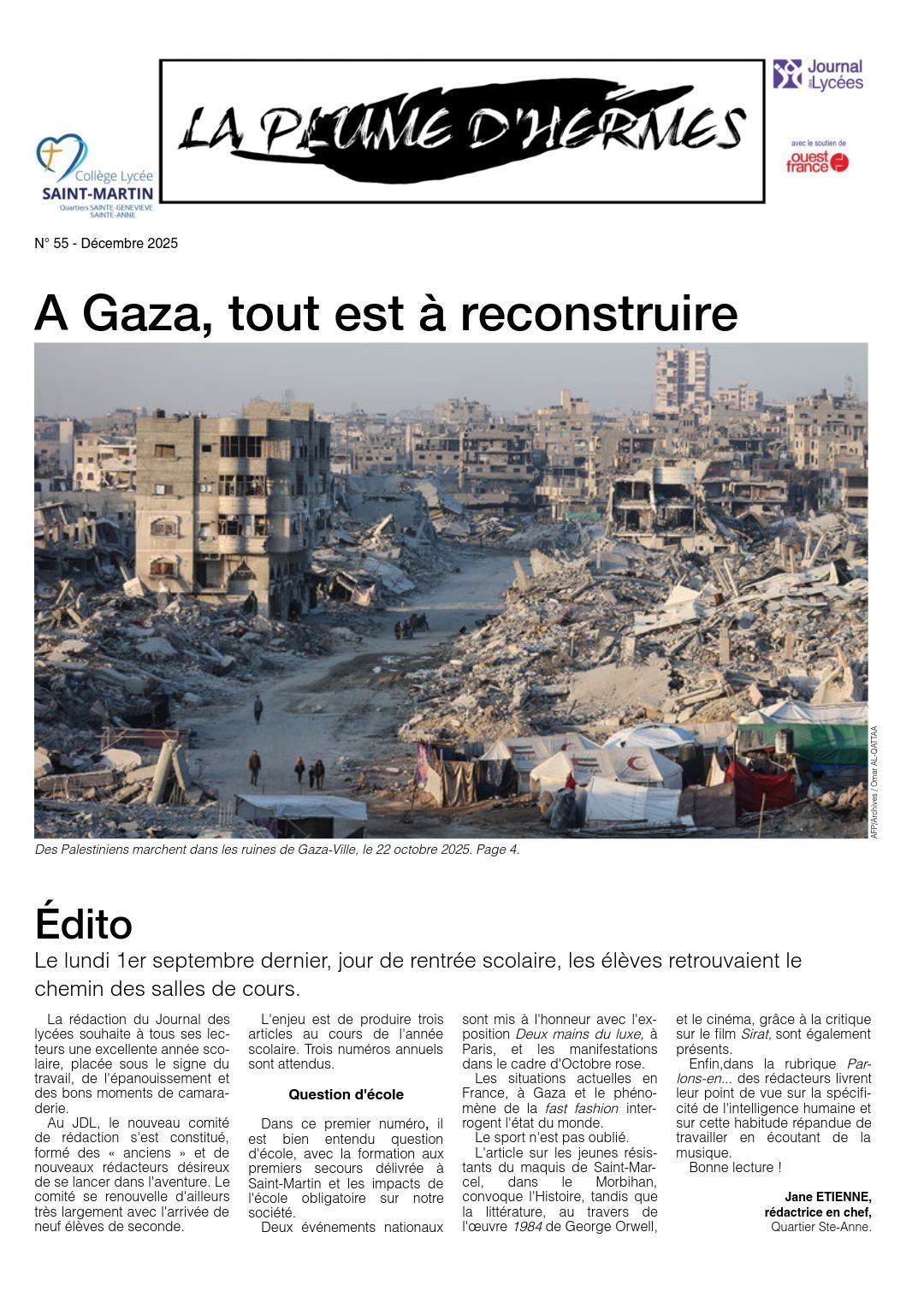Notre journal, La Plume d’Hermès, a vu le jour en 2002 au collège-lycée Sainte-Geneviève à l’initiative du professeur documentaliste en fonction, Madame Marie-Christine LEGAUD et d’un groupe d’élèves passionnés par l’information et le dessin. Les exemplaires sont alors tirés sur la photocopieuse du lycée, avec un objectif qui va traverser les années : un journal réalisé par et pour les lycéens.