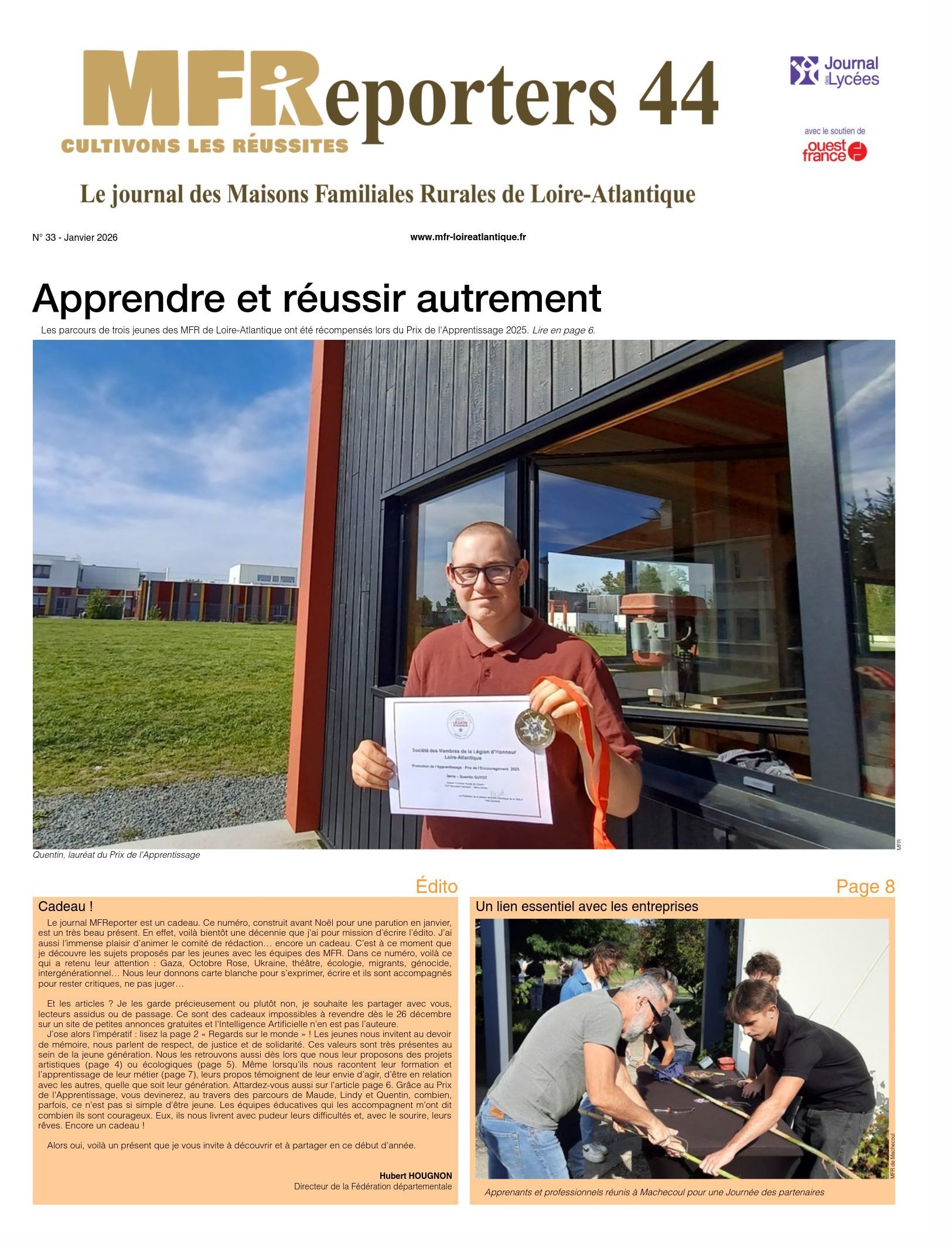 Chaque année, les MFR de Loire-Atlantique se rassemblent pour donner vie au MFReporter, le journal des apprenants, entièrement rédigé par les jeunes. Pour l’édition de janvier 2025, nous avons eu la chance d’être invités à vivre une journée unique dans les locaux de Ouest France à Rennes !
