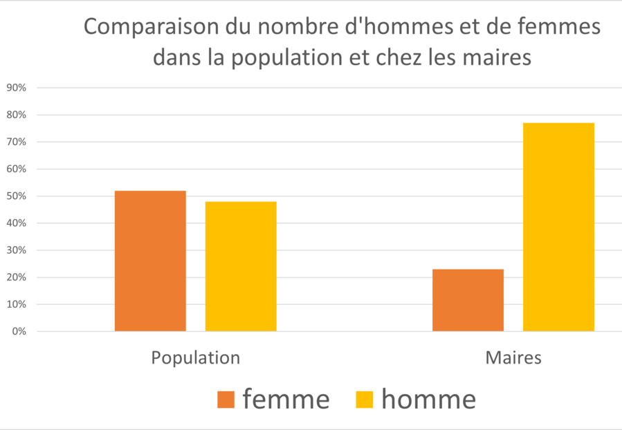Cette réalité ne se retrouve pas chez les maires du département. Plus de 75 % des maires sont des hommes, ce qui laisse les femmes largement minoritaires à la tête des communes.