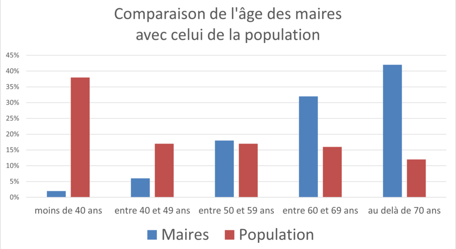 Cette différence témoigne d'un engouement fort pour les personnes expérimentées. Pour les plus jeunes, il est difficile de s'imposer au sein des conseils municipaux. Manque d’expérience, manque de temps, études ou enfants tendent à expliquer cette faible représentation.