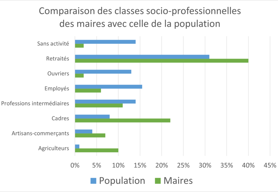 Or, les données démontrent que les ouvriers et employés sont plus nombreux. Les maires semblent donc être issus de catégories socio-professionnelles différentes de celles qu'ils représentent, souvent plus favorisées.