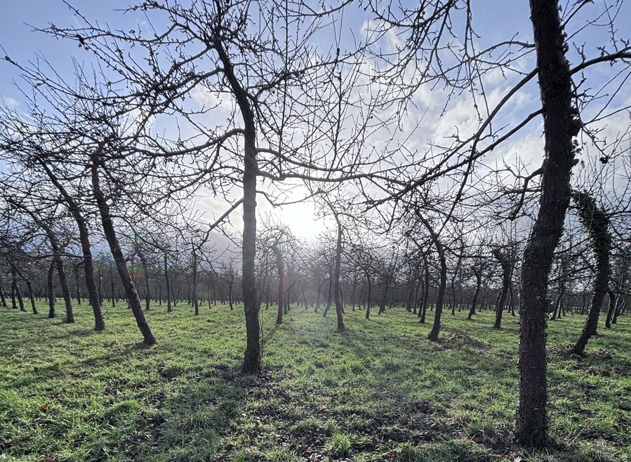 Les pommiers hautes tiges, plantés il y 40 ans, sont de très grande taille, d’où leur nom "hautes tiges". Ils permettent le pâturage des vaches et donc un gain de place pour le parcellaire. Les plus jeunes ont seulement 10 ans et ne sont donc pas encore au maximum de leur production. Planter 100 nouveaux pommiers hautes tiges permettra de renouveler les variétés et les plants, et de favoriser à l’avenir de meilleurs rendements, et sans utiliser de produits chimiques qui créent de la résistance et abîment les pommiers.