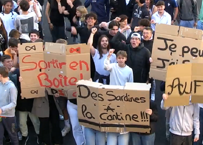 Lou et Lilou remettent la sardine dans l'assiette des étudiants avec Sardines vs étudiantes.