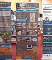L'exposition sur les zones inondables de notre commune, précédemment visible au Présidial, a été présentée du 28 novembre au 12 décembre dans le hall et le CDI. Elle était composée de nombreux panneaux, d'une frise, d'un triptyque, d'un totem, de pupitres, d'exemples de matériels de protection (batardeaux, clapet anti retour, pompes, obturateurs de canalisations). Au sol, à l'entrée du CDI, une très intéressante carte de 4 mètres carrés sur laquelle il était possible de se déplacer permettait de visualiser une très grande photographie de Quimperlé "vue du ciel" avec ses zones inondables... et de localiser sa maison.