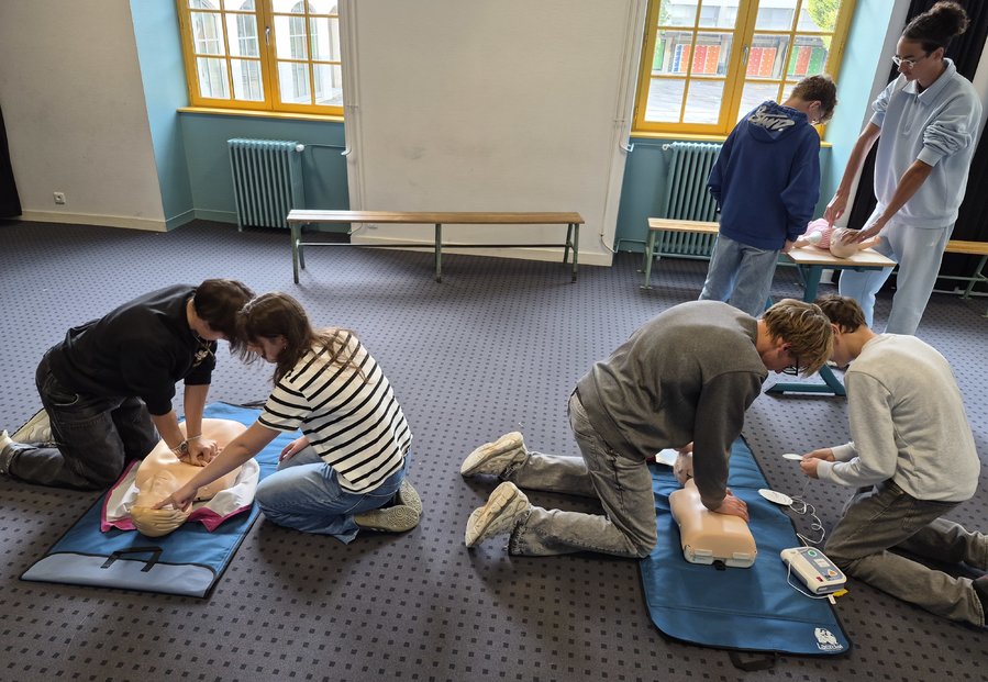 En ce début d'année, trois formations aux premiers secours ont été mises en place au lycée. M. Geoffroy, professeur d'EPS au lycée et pompier volontaire sur son temps personnel, dispense cette formation chaque année depuis maintenant douze ans.