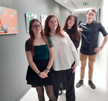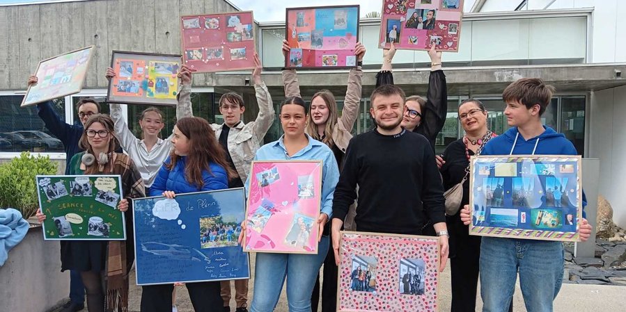Pour Curtis, Emeline, Naïg et Yuna : « Nous sommes contents d'avoir travaillé avec les résidents. Chaque tableau, c'est un moment partagé. A chaque fois, nous avons laissé les résidents décorer les photos en y mettant des éléments de décoration comme ils le souhaitaient. Et les tableaux sont beaux...ce projet nous aide à changer notre regard et se dire que l'on pourrait travailler dans un foyer de vie... »