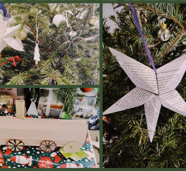 Dans une démarche écologique les éco-délgués ont fabriqué cette année des décorations de Noël à partir de matériaux recyclés.