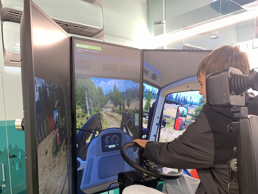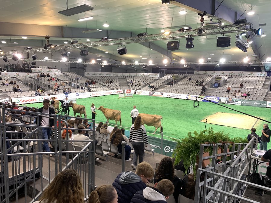 Nous avons démarré par le « ring », où s'organisent des présentations animales. Ensuite, nous avons vu, le hall des races bovines et la logistique afférente, et une démonstration de robots de traite et de nettoyage. Enfin, nous avons rencontré Guillaume, l'animateur du camion "L’aventure du vivant", pour y tester le simulateur de conduite d’engins, nos connaissances des filières agricoles et les casques de réalité virtuelle.