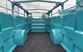 Cette bétaillère mesure 6,40 m de long pour une largeur de 2,30 m et une hauteur de 1,50 m. Ses nouvelles suspensions, couplées à des surbaisseurs, permettent d'obtenir un débattement total de 14 cm, avec une gestion indépendante à droite et à gauche. Ce dispositif souple et réactif, à vide comme en charge, assure une stabilité remarquable et, surtout, un confort supérieur pour l'éleveur, mais aussi pour les animaux. Les suspensions amortissent les chocs de la route, ce qui crée une meilleure stabilité pour l'animal.