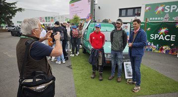 Jean-Baptiste De Wever, agriculteur en Normandie et influenceur, est venu au SPACE 2024 avec son célèbre C15 aux couleurs de John Deere. Il est tombé en panne et a fait appel aux réseaux sociaux pour trouver la durite nécessaire pour pouvoir réparer le C15. L’engouement a été très fort avec de nombreux jeunes à venir voir le C15 garé dans le Parc Expo.