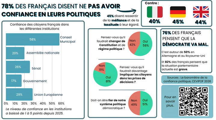 Il y a une défiance envers la démocratie qui a progressé ces dernières années, et elle est multifactorielle. Elle peut venir de la perception que la politique n'a pas toujours une capacité d'agir sur le réel, nous faisant alors nous demander si voter sert vraiment. Elle peut aussi puiser ses racines dans le sentiment que la démocratie est perfectible, car certains peuvent avoir l'impression que leur vote et leurs idées ne sont pas vraiment prises en compte. Il peut également y avoir une défiance par rapport à une certaine classe politique, qui peut être perçue comme privilégiée ou profitant du système, quand le système représentatif n'a pas la capacité de pouvoir changer le quotidien des citoyens.Ces raisons peuvent expliquer pourquoi certains se sont éloignés de la vie citoyenne, d'autant plus que les réseaux sociaux alimentent souvent leurs usagers en fausses informations et échanges défiants à l'égard de la politique.