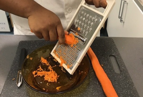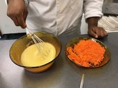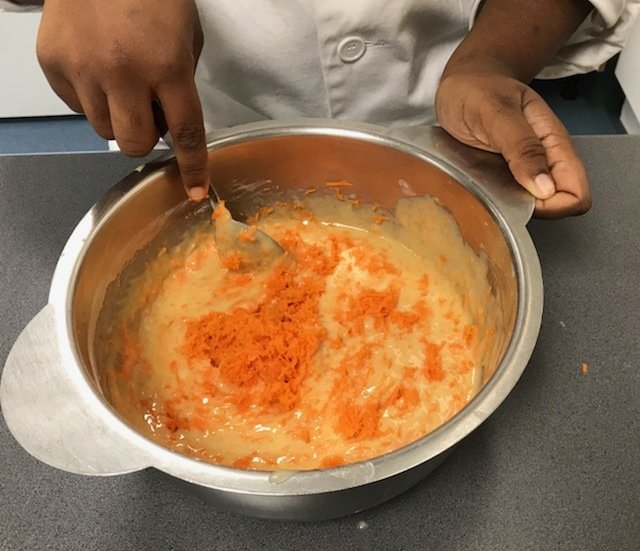 Cela leur permet de développer de solides compétences culinaires, allant de la maîtrise des techniques de base au respect strict des règles d’hygiène, afin de proposer des repas variés, équilibrés et adaptés. Ils pourront ainsi réinvestir cet apprentissage auprès des divers publics (enfants, personnes âgées) dans leur futur métier.La recette : le "carrot cake"