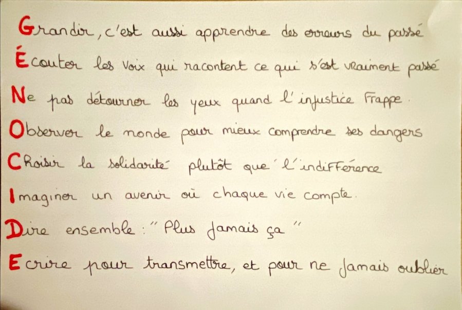 En conclusion, pour nos jeunes 4e, parler des génocides, c’est apprendre à dire non à l’injustice et oui au respect.