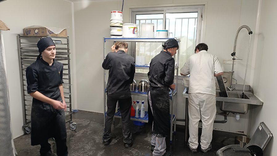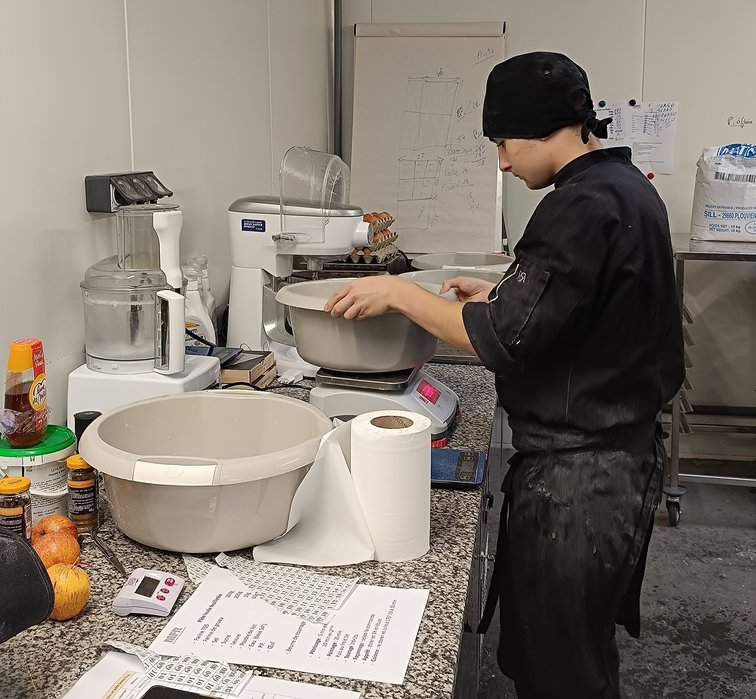 A l'atelier, il n'y a jamais de temps mort ; en effet, pendant la cuisson, les apprentis nettoient, rangent pour poursuivre avec d'autres productions. Selon Tom : "c'est une coupure dans la semaine à la MFR , car après la technologie et les cours généraux du lundi et du mardi, suivent les ateliers pratiques du mercredi et du jeudi. C'est une manière de finir la semaine avec ce qu'on aime le plus : la pratique."
