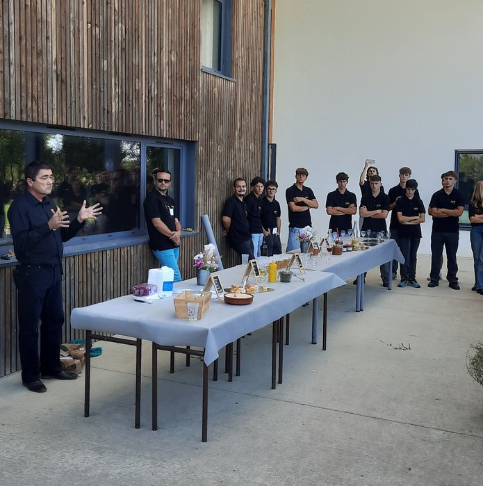 Vendredi 19 septembre, la MFR-CFA de Machecoul a organisé une journée de partage entre les entreprises partenaires, les élèves, les formateurs et les administrateurs. Les élèves ont choisi de travailler sur les cinq sens pour la reconnaissance des végétaux.