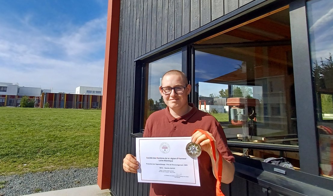 Je travaille dans une entreprise pas loin de chez moi qui s'appelle Culaud Moulures. Ils m'ont accompagné tout au long de mon CAP, que j'ai obtenu en juin 2025. Deux moniteurs m’ont parlé du Prix de l’apprentissage. J’ai rempli un dossier, j’ai reçu une invitation sans savoir le prix qui allait m’être décerné. Je l’ai découvert le 29 septembre 2025 en allant à la Préfecture de Nantes. Mes parents étaient super fiers de moi. »