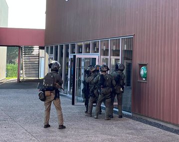 Le vendredi 15 novembre, le lycée a accueilli les gendarmes et les pompiers pour un exercice grandeur nature. Une trentaine d'élèves sont missionnés pour jouer le rôle des victimes.