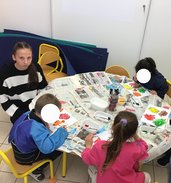 En arrivant, j’ai d’abord participé à la préparation d’une des activités du matin : la peinture. Mais il y avait aussi la boule de fort ou la manucure.