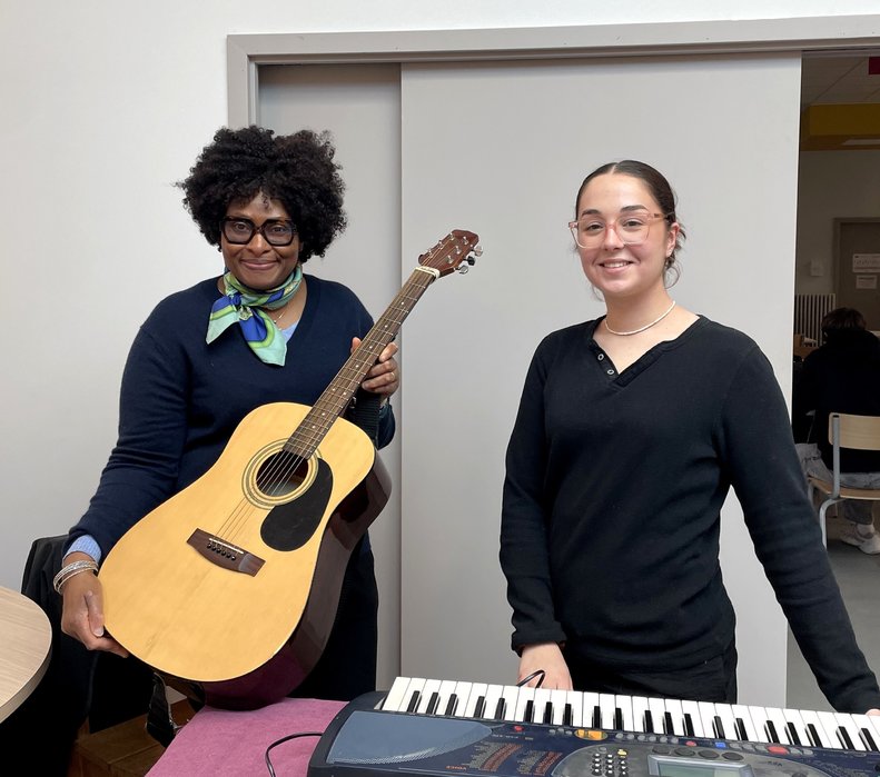 Noémie, en classe de 2nde AEPA a commencé la musique grâce à son père qui pratiquait des instruments. « Il y a cinq ans, j'ai eu une guitare en cadeau et ensuite j'ai eu la chance de bénéficier de cours et j'ai adoré. J'aimerais partager ce plaisir que j'ai eu à d'autres jeunes » Ainsi, Noémie a pu proposer à l'équipe de Vie scolaire du lycée cette envie de lancer un atelier musical autour de la pratique instrumentale.