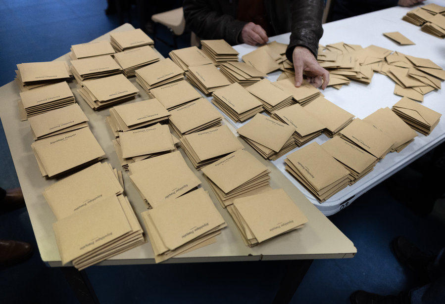 Ensuite, les tâches sont clairement réparties : une personne ouvre les enveloppes et vérifie la validité des bulletins, en s'assurant que rien ne puisse entraîner un vote nul (par exemple, la présence du programme plutôt que de la liste dans le bulletin), une autre lit à voix haute le nom inscrit sur le bulletin, tandis que les deux personnes restantes notent les résultats sur des feuilles prévues à cet effet.