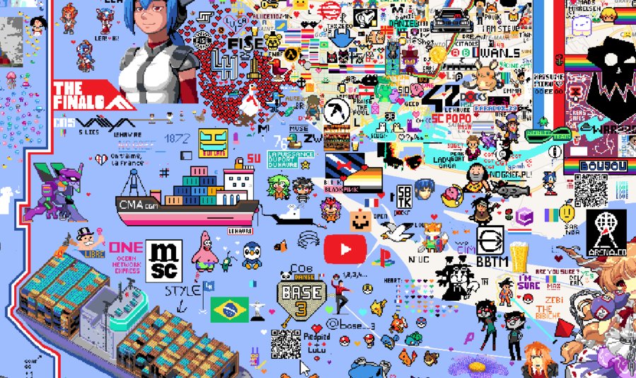 N’importe qui dans le monde peut participer mais on peut remarquer que les zones moins habitées et les pays où le gouvernement exerce une surveillance forte comportent moins de dessins. La carte dispose de quatre mille milliards de pixels.