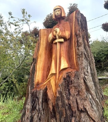 A l'origine, il y avait sur le site un séquoia de 27 mètres de haut. Déclaré mort par l'Office national des forêts (ONF), il a été abattu en mars dernier. Gabriel Bertel, le directeur adjoint, a alors eu l’idée de conserver deux mètres du tronc pour, éventuellement, en faire une statue. Puis, l’idée de représenter Jeanne d’Arc est née lors d'un conseil pastoral qui s'est interrogé sur la façon de rendre plus visible l'image de Jeanne d'Arc. Confier la réalisation à un artiste est devenu évident.